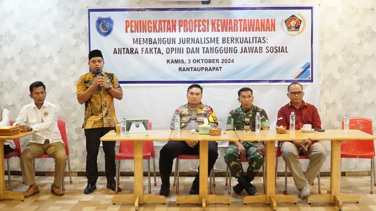 Labuhanbatu, Haluanpos.com- Peningkatan profesi kewartawanan PWI Labuhanbatu dihadiri para pimpinan forkopimda Labuhanbatu diantaranya Kapolres Labuhanbatu AKBP Dr Bernahard L Malau, Kasdim 0209/lb Mayor Inf SH. Tanjung dan PJS. Bupati Labuhanbatu diwakili Kadis Kominfo Ahmad Fadly Rangkuti, ST.M.Kom.