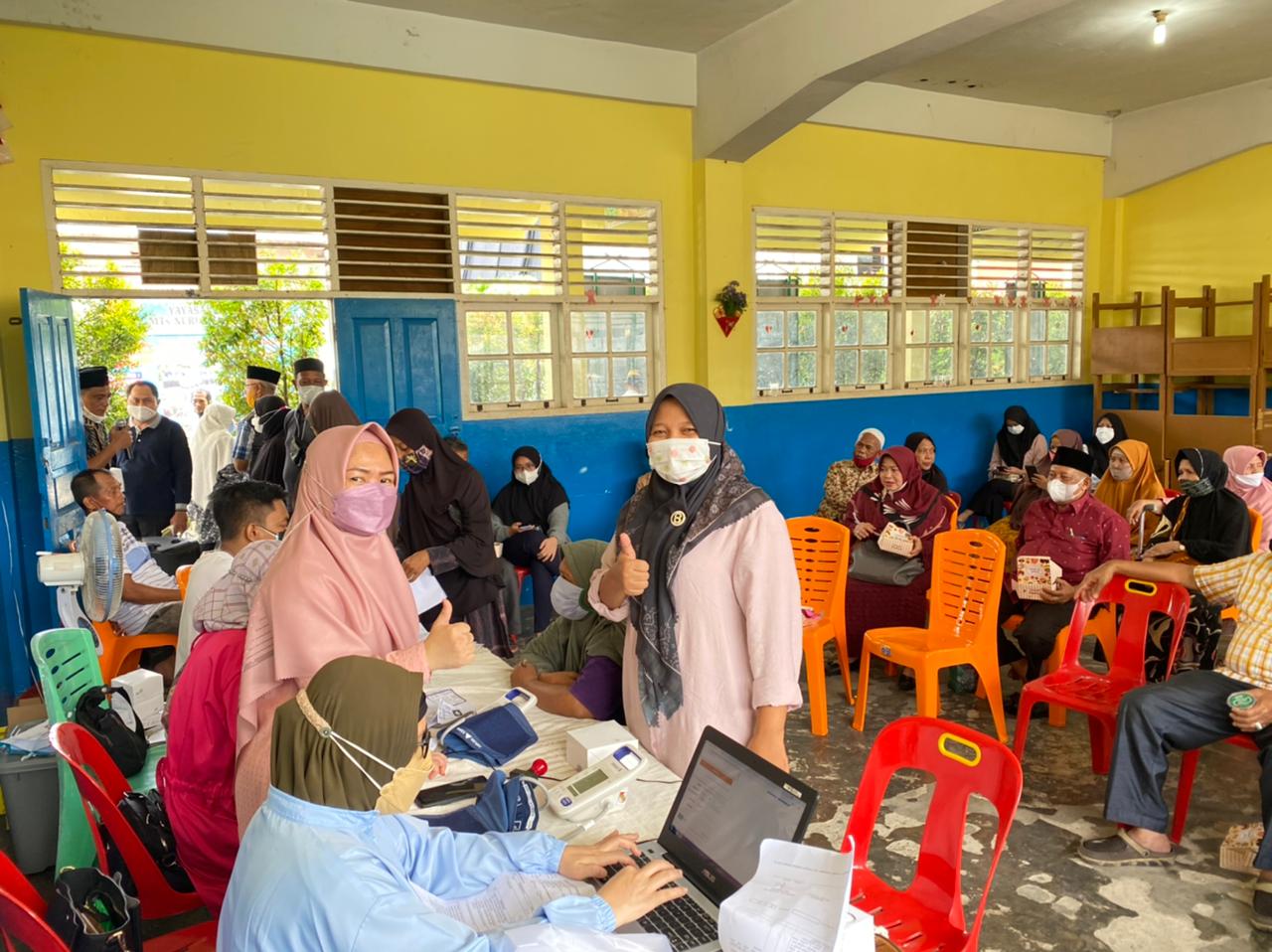 Pelaksanaan vaksinasi di Masjid Nurul Yakin jalan Hang Tuah RW 02 Kelurahan Rejosari turut dihadiri Camat Indah Vidya Astuti S.STP dan Kapolsek Tenayan Raya AKP Manapar Situmeang SIK, Bhabinkamtibmas, Lurah Rejosari dan Ketua RW 02.