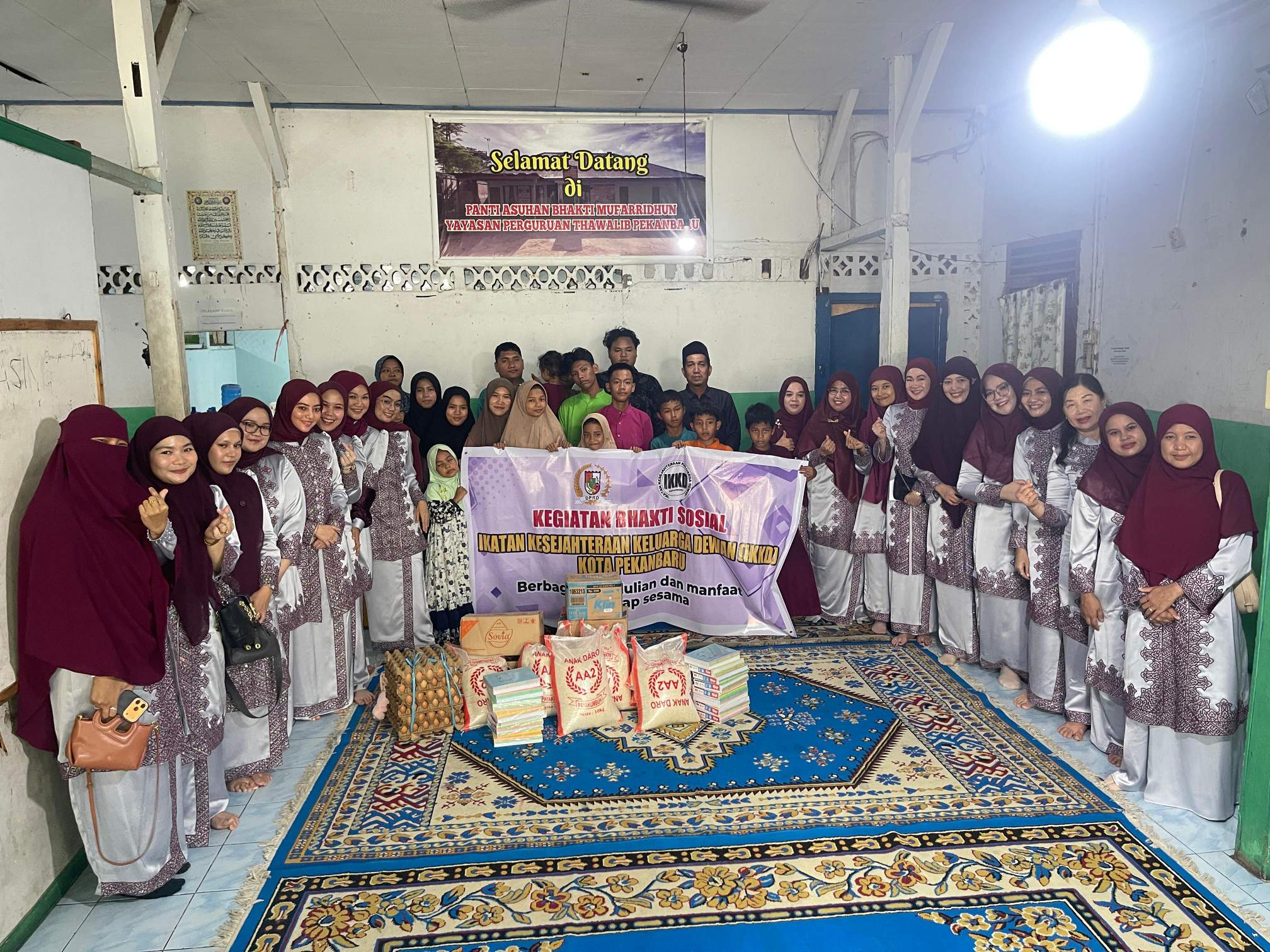 Ikatan Kesejahteraan Keluarga Dewan (IKKD) Kota Pekanbaru melaksanakan kegiatan sosial berupa penyaluran bantuan kepada anak yatim piatu di dua panti asuhan pada Jumat (12/12/2025).