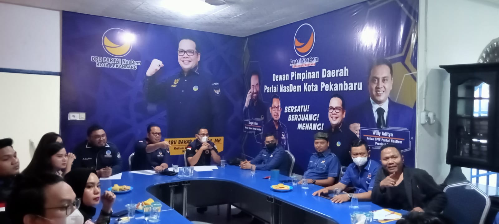 Tampak hadir dalam pertemuan yaitu ketua DPD Partai Nasdem Kota Pekanbaru Abu Bakar Siddik SH.MH, Wakil Ketua Kaderisasi Rahmad Handayani, Sekretaris Munawar Syahputra serta wakil Ketua OKK DT Nouvendi, ketua Milenial NasDem serta Ketua Garda Pemuda NasDem Kota Pekanbaru Faisal Islami dan seluruh anggota Garda Pemuda Partai Nasdem kota Pekanbaru.