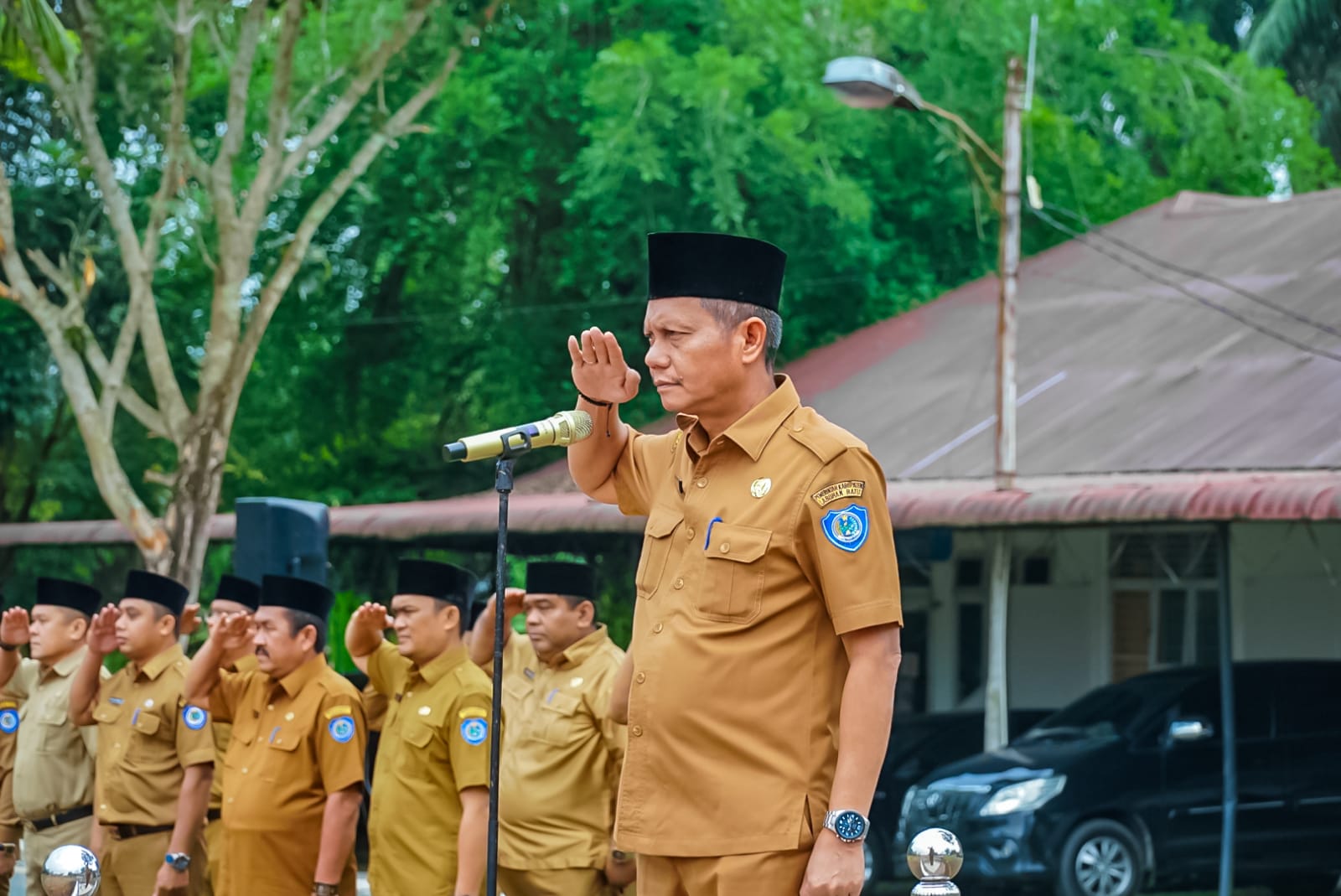 Turut menghadiri apel gabungan para Asisten, para kepala OPD, pejabat eselon 3 dan 4, jabatan fungsional, dan staf di Lingkungan Pemerintah Kabupaten Labuhanbatu.(Sw)