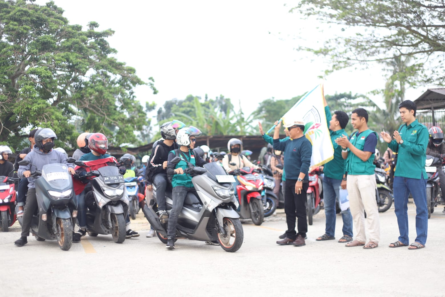 Iman selaku Koordinator Lapangan dalam agenda Balik Kampung Besame ini juga memberikan arah kepada peserta balik kampung untuk dapat memakai stiker di kendaraan nya masing-masing.
