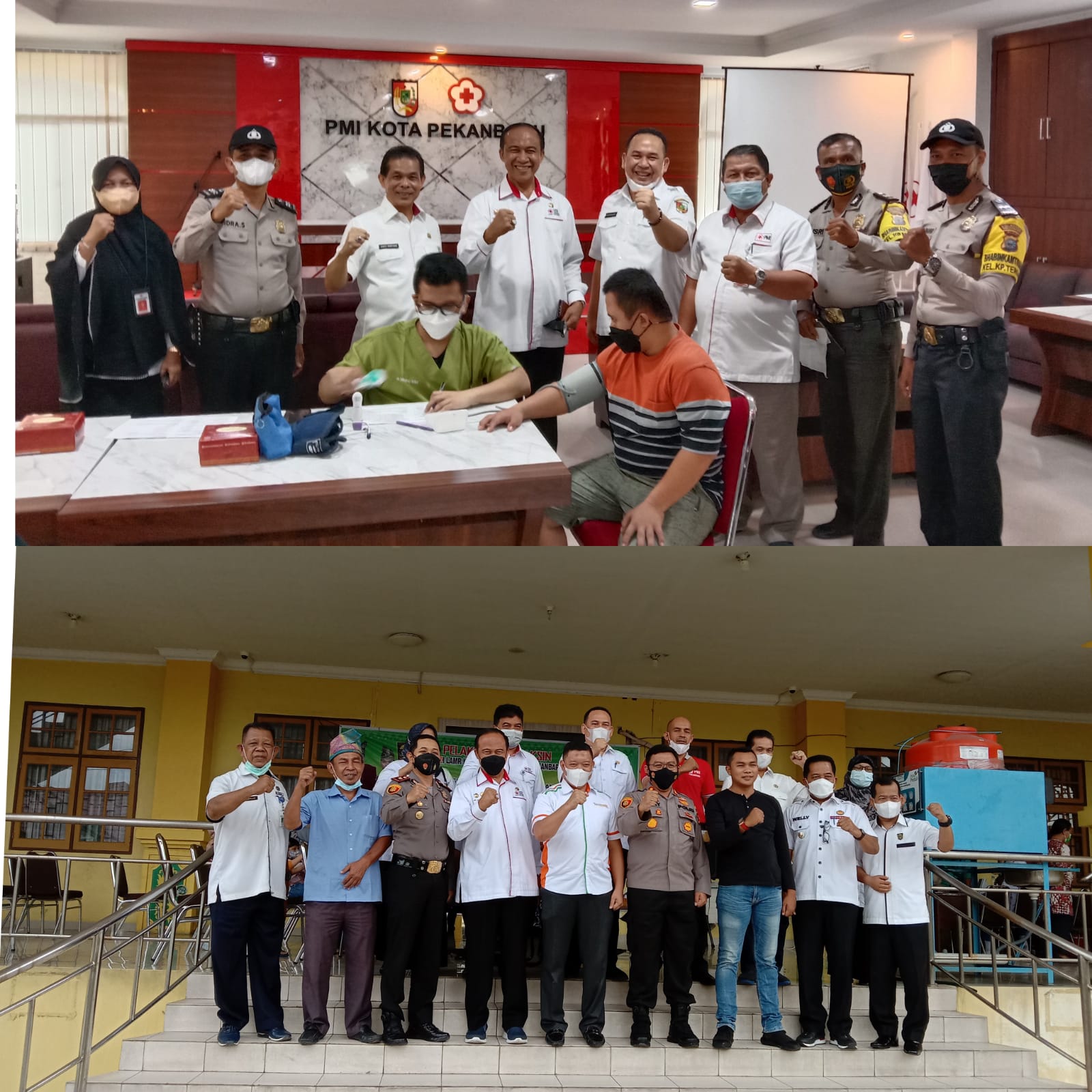 Palang Merah Indonesia (PMI) Pekanbaru selain dengan Diskes juga bekerjasama dengan Polresta Pekanbaru menggelar vaksinasi massal di beberapa lokasi di Pekanbaru.