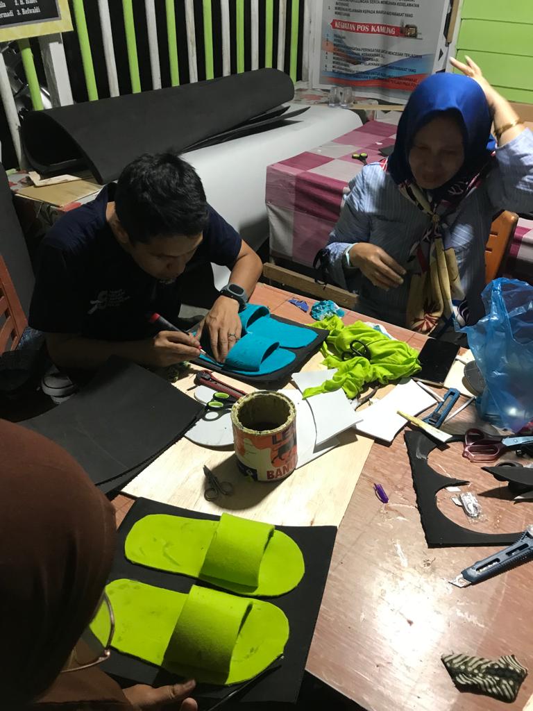 Acara ini bertempat di RW 20 Kelurahan Tangkerang Tengah Pekanbaru. Ketua RW 20 sangat Mendukung Kegiatan yang penuh Manfaat ini untuk menjadikan Barang Bekas Jadi Sandal yang Cantik.
