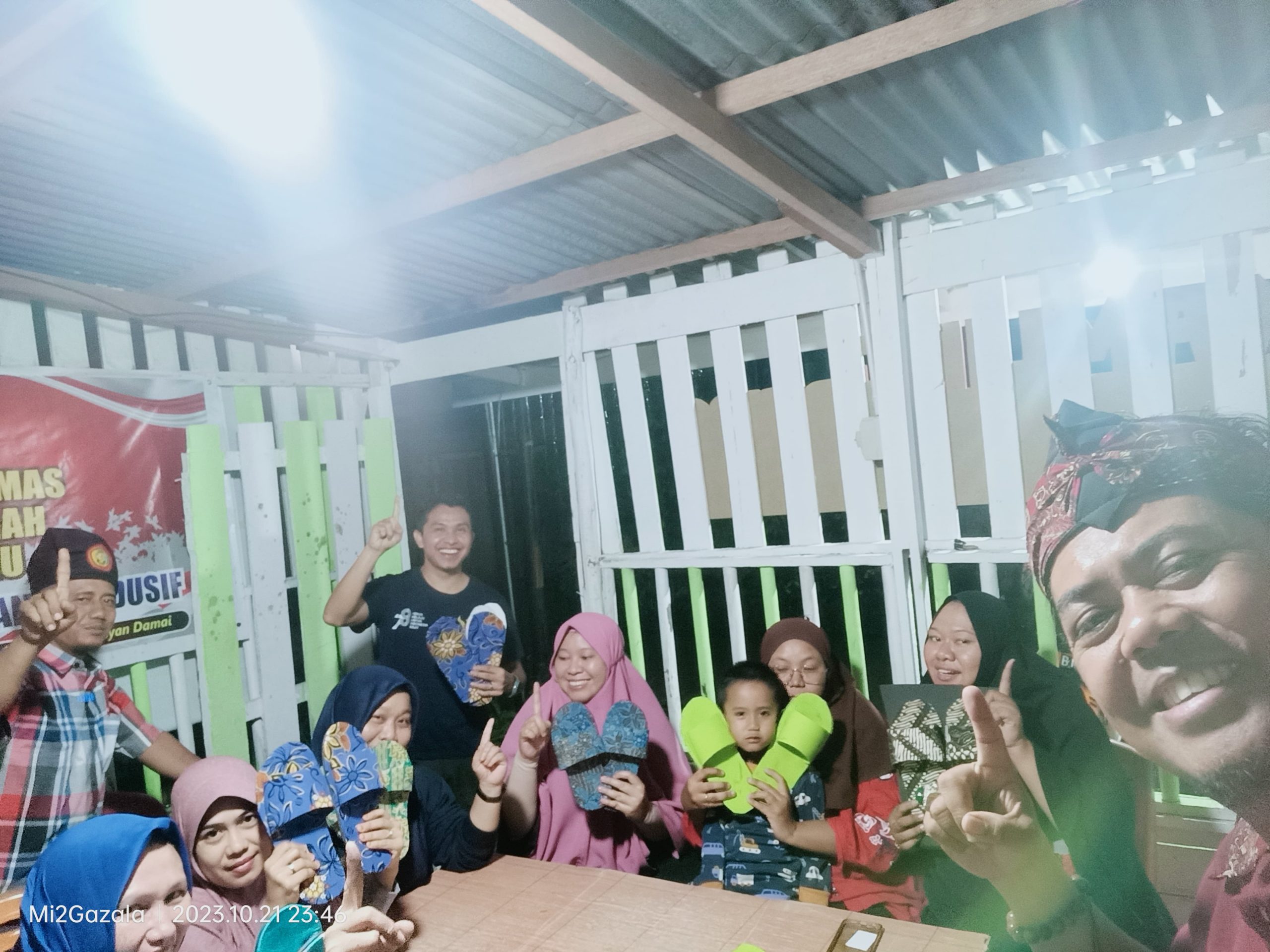 Acara ini bertempat di RW 20 Kelurahan Tangkerang Tengah Pekanbaru. Ketua RW 20 sangat Mendukung Kegiatan yang penuh Manfaat ini untuk menjadikan Barang Bekas Jadi Sandal yang Cantik.