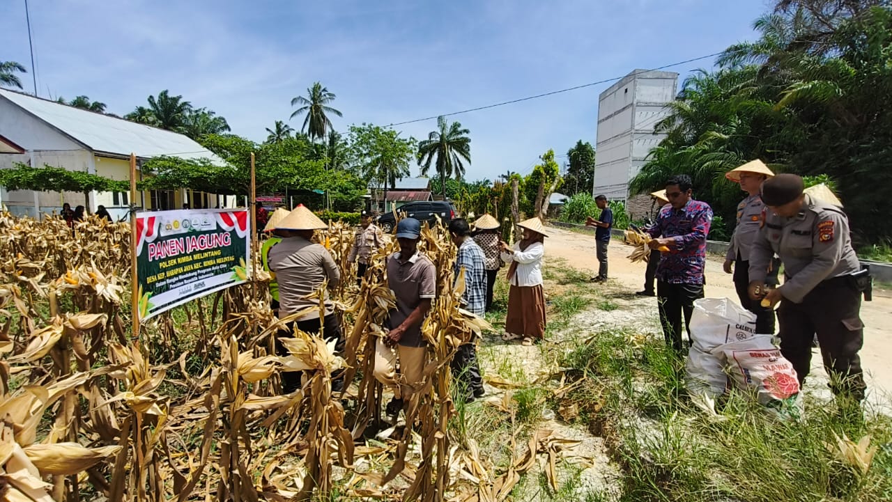 ROKAN HILIR (HALUANPOS.COM) Dalam upaya memperkuat ketahanan pangan dan mendukung Program Asta Cita Presiden Republik Indonesia, Polsek Rimba Melintang Polres Rokan Hilir melaksanakan kegiatan Panen Raya Jagung Serentak Kuartal III di Kepenghuluan Harapan Jaya, Kecamatan Rimba Melintang, Kamis (6/11/2025) pagi.