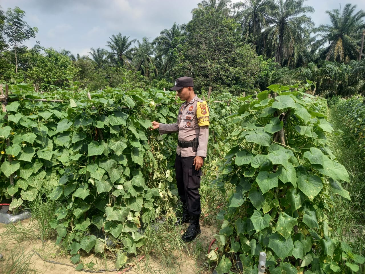 Hal ini dilakukan guna memantau perkembangan tanaman mentimun dan memberikan dukungan kepada masyarakat dalam program ketahanan pangan yang digagas Polri, khususnya Polsek Simpang Kanan.