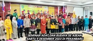 Pekanbaru(Haluanpos.com)-Ketua Dewan Penasehat LEMTARI Pusat Prof. Dr. H. Jimly Asshiddiqie, S.H., M.H.secara resmi membuka Seminar Adat dan Budaya Melayu se-Asean dengan ditandai pemukulan Gong serta penanda tanganan sertifikat peserta seminar. Sabtu(9/12/23)