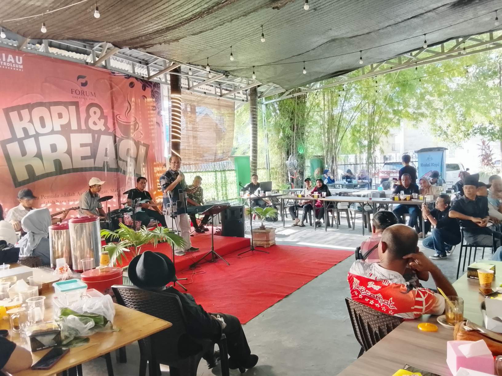 Dalam acara Kopi dan Kreasi tersebut diisi dengan nyanyian yang dibawakan penyanyi senior, Udin Semekot, Syafrial Koyaf, Agromes, Chen Mei Lan(Alin) dan para artis lainnya. Selain itu, juga diisi dengan pembacaan karya puisi yang dibawakan oleh sastrwan Riau, Fedli Aziz dan Mur Parsaulian serta diikuti oleh Prof. Dr. Saktioto, S.Si., M.Phil., seorang Guru Besar Fisika dari Universitas Riau,