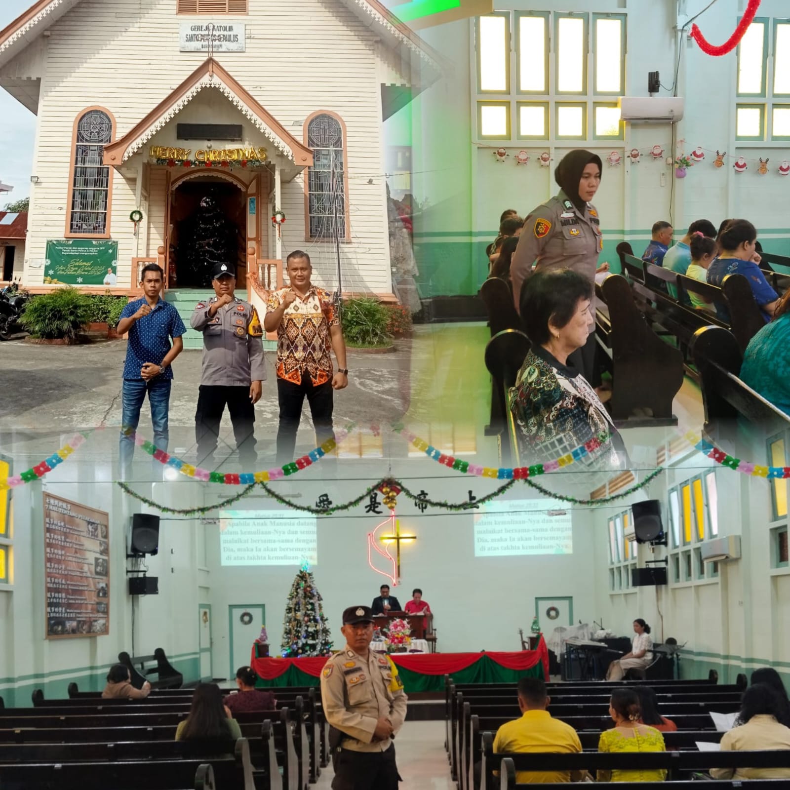 ROKAN HILIR ( HALUANPOS.COM) Jajaran personil Polsek Bangko Polres Rokan Hilir Melakukan Pengamanan di delapan gereja yang ada dikecamatan Bangko kamis 1/1 2025.