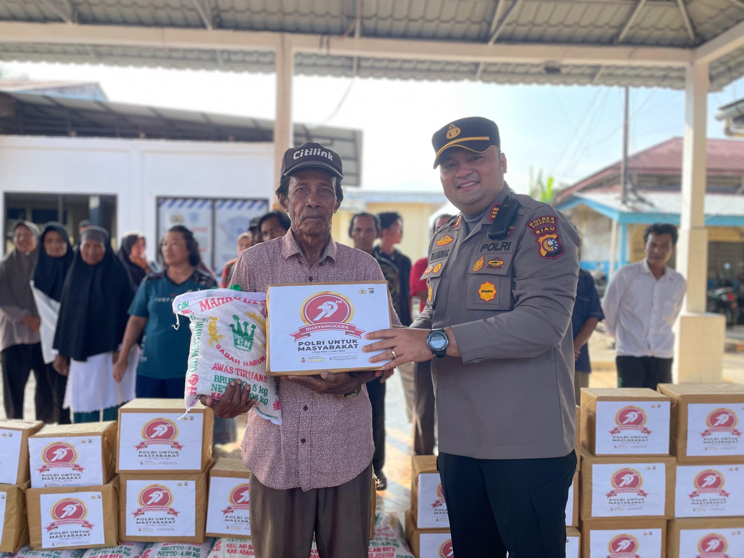 ROKAN HILIR ( HALUANPOS. COM) Dalam Rangka Peringatan HUT Bhayangkara ke 79, kepolisian sektor Bangko Polres Rokan Hilir (Rohil) malaksanakan Kegiatan Bakti Sosial Memberikan Bantuan paket Kepada Maysarakat.