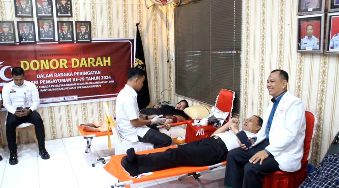 ROKAN HILIR (HALUANPOS.COM) Dalam rangka menyambut Hari Ulang Tahun (HUT) Pengayoman ke-79 tahun 2024, Kantor Imigrasi Kelas II TPI Bagansiapiapi dan Lapas kelas IIA Bagansiapiapi melaksanakan bakti sosial donor darah, Rabu (7/8/2024).