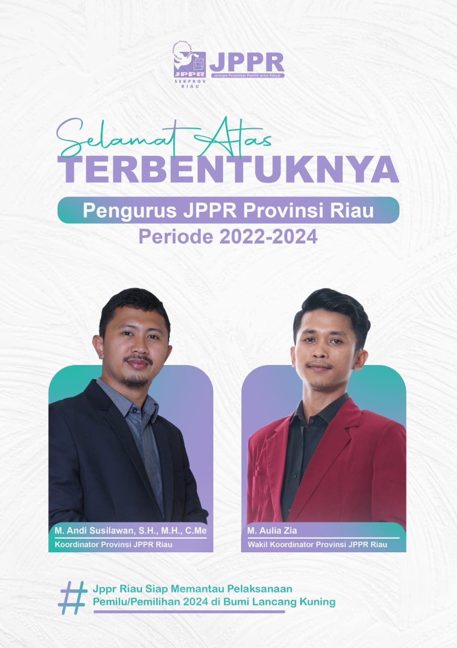 Untuk diketahui bersama, berikut ini susunan kepengurusan Jaringan Pendidikan Pemilih untuk Rakyat (JPPR) Provinsi Riau periode 2022-2024: