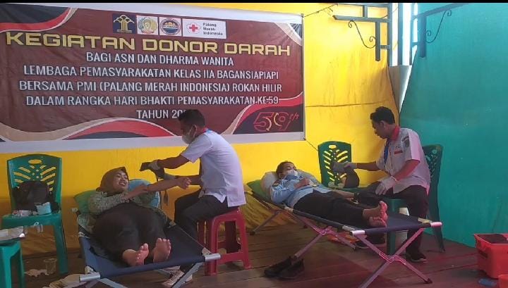 Kegiatan donor darah yang diikuti oleh pegawai Lapas Bagansiapiapi serta diikuti oleh Dharma Wanita Persatuan (DWP) Lapas Bagansiapiapi ini bekerja sama dengan Palang Merah Indonesia (PMI) Rokan Hilir dan Rumah Sakit Umum Daerah (RSUD) Dr. Pratomo Kabupaten Rokan Hilir.