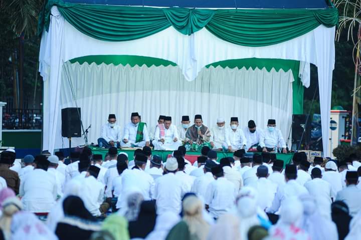 Kegiatan Zikir Akbar yang berlangusng hikmat ditutup dengan silahturahmi saling maaf memaafkan dalam menyabut bulan Ramadhon nan suci. (Humas Pemkab. Meranti).