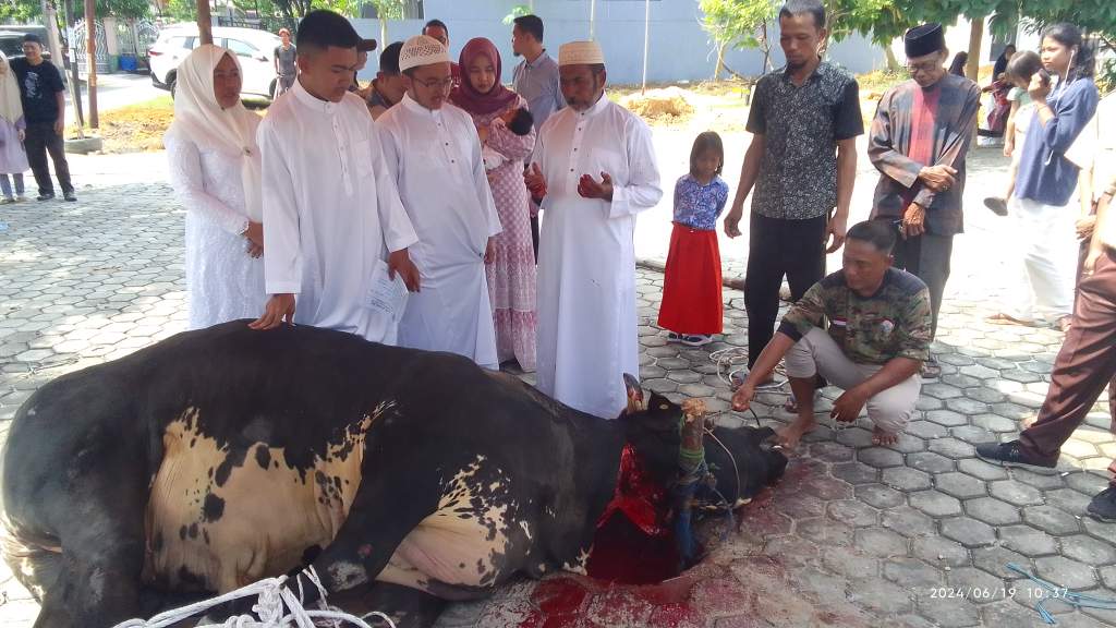 Pekanbaru(Haluanpos.com) – Muhammad Zahirsyah caleg anggota DPRD Kota Pekanbaru terpilih dari partai Demokrat yang juga anak kandung dari Politisi senior H Fathullah SH MH melakukan pemotongan sapi kurban dengan berat 1,3 Ton. Rabu(19/6/24)