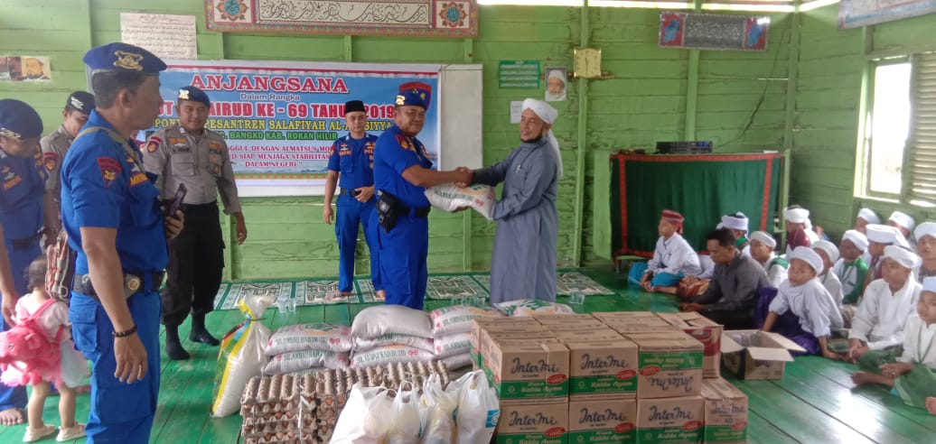 Bagansiapiapi- (HPC) Dalam rangka HUT Polairud Ke 69 Tahun 2019, Polairud Polres Rokan Hilir menggelar Anjangsana di yayasan Pondok Pasenteren Salafiya Al -Asasiyah Rokan Hilir, senin (18/11/2019).