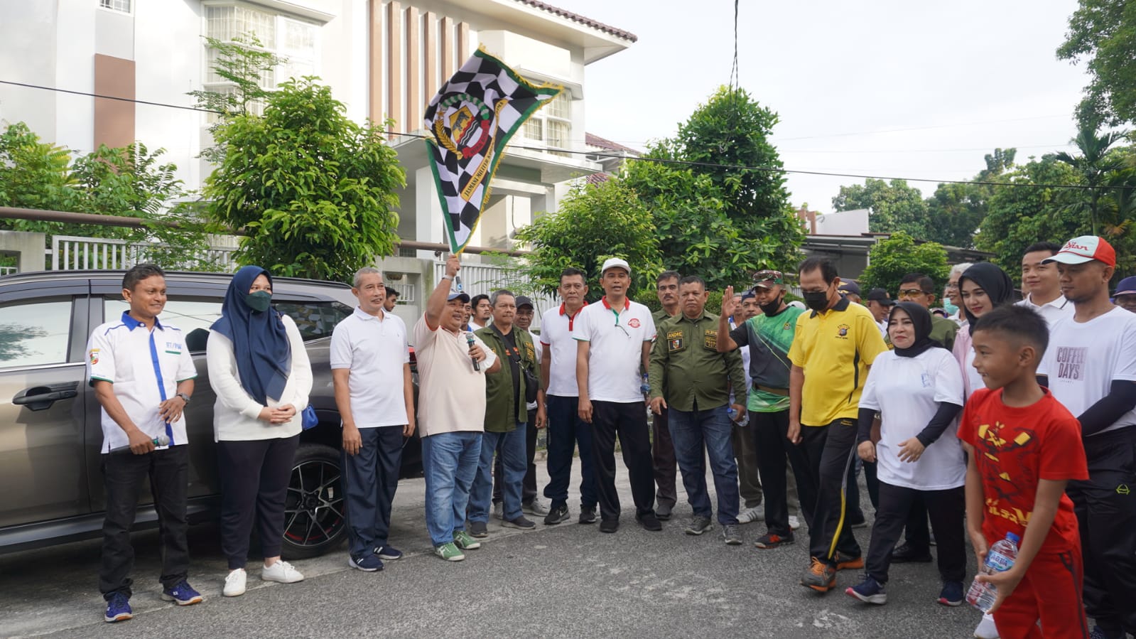PEKANBARU (HALUANPOS.COM) – Kepala Dinas Lingkungan Hidup dan Kebersihan (DLHK) Hendra Afriadi SH didampingi Camat Pekanbaru Kota Rein Rizka Karvy melepaskan rombongan Gerak Jalan Santai yang dilaksanakan di Kecamatan Tenayan Raya, Ahad Pagi, (12/06/2022). di sekitaran Taman Kayu Putih, Pekanbaru. Selain berolahraga, kegiatan ini juga menjadi ajang silaturrahmi antara Forum RT/RW bersama Pj Wali Kota Pekanbaru