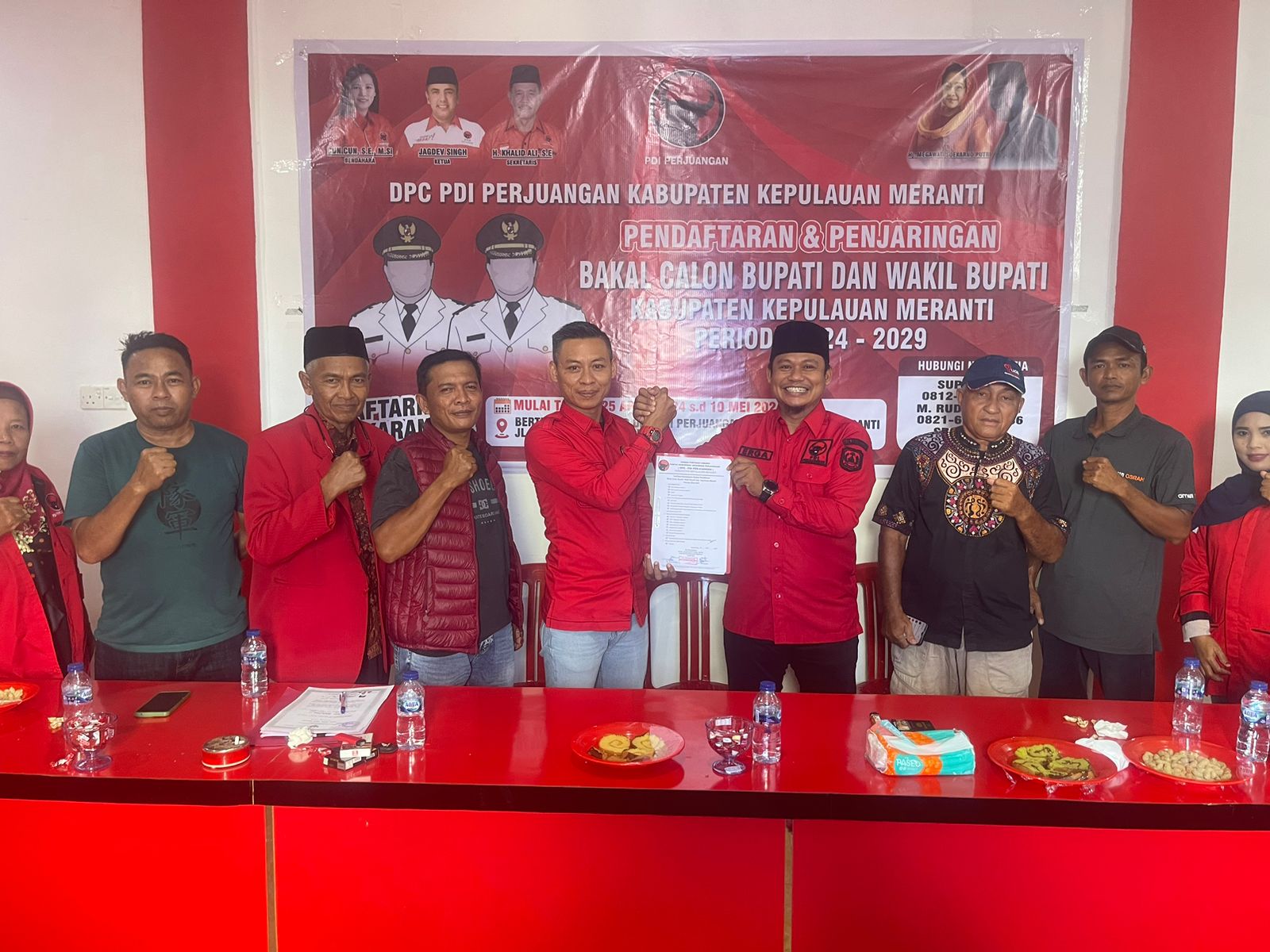 Balon bupati Hery Saputra, yang juga merupakan Kader DPC Partai PDI Perjuangan Kepulauan Meranti sebelumnya sudah mengambil formulir pendaftaran di Partai PDI-P Jalan Utama Alah Air kemarin pagi.