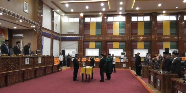 ROKAN HILIR ( HALUANPOS.COM) Rapat paripurna Istimewa pemberhentian Anggota DPRD Rohil Muhammad Firdaus NZ .S.sos sekaligus Peresmian Pengangkatan Penganti Antar Waktu (PAW) Anggota DPRD Rohil Sahrul Alfindra ,S.pd, Periode 2019- 2024