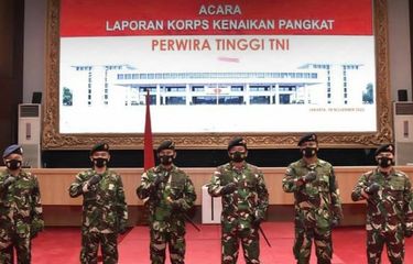Adapun 22 perwira tinggi (pati) yang menerima kenaikan pangkat terdiri dari 5 pati TNI AD, 6 pati TNI AL, dan 11 pati TNI AU.