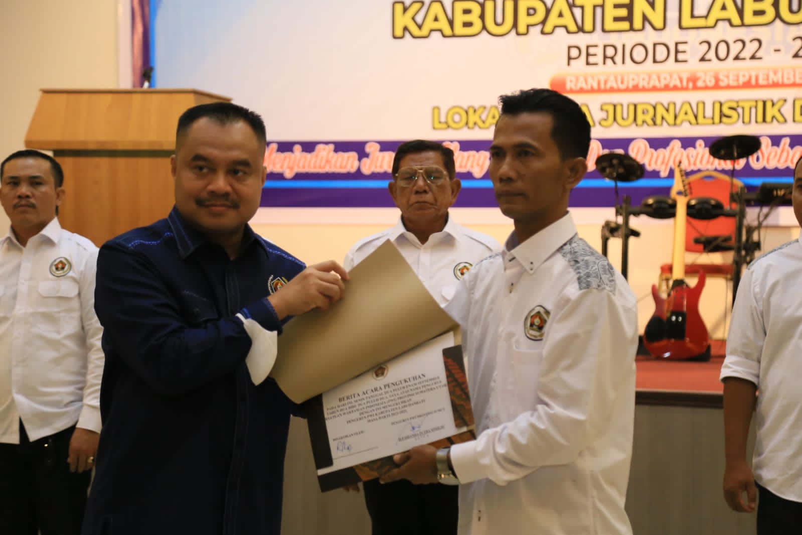 LABUHANBATU (HALUANPOS.COM)-Struktur Kepengurusan Persatuan Wartawan Indonesia (PWI) Kabupaten Labuhanbatu periode 2022-2025 resmi dilantik oleh Ketua PWI Propinsi Sumatera Utara H.Farianda Putra Sinik, SE, di Ballroom Suzuya Hotel Rantauprapat Senin 26/9/2022.