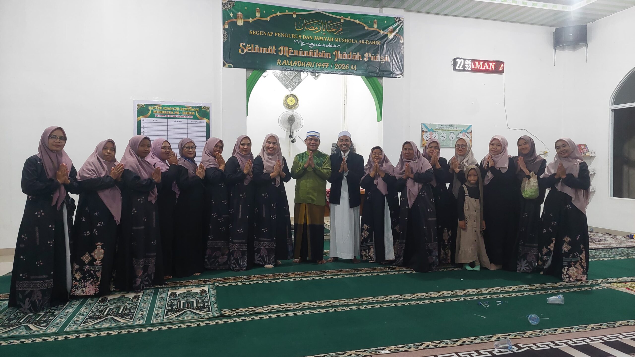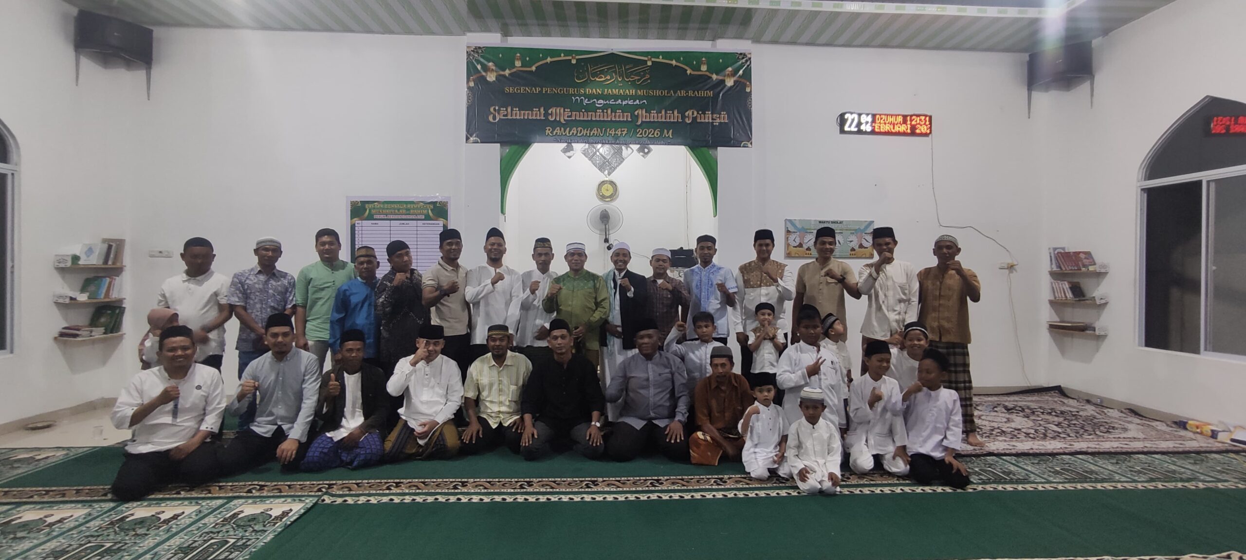 ” Bapak ibuk jamaah mari kita aktif beribadah di bulan Ramadhan tahun ini di mushala kita ini,. Dan kita ajak anak serta keluarga kita beribadah di bulan ramadhan tahun ini. ” Tambahnya.