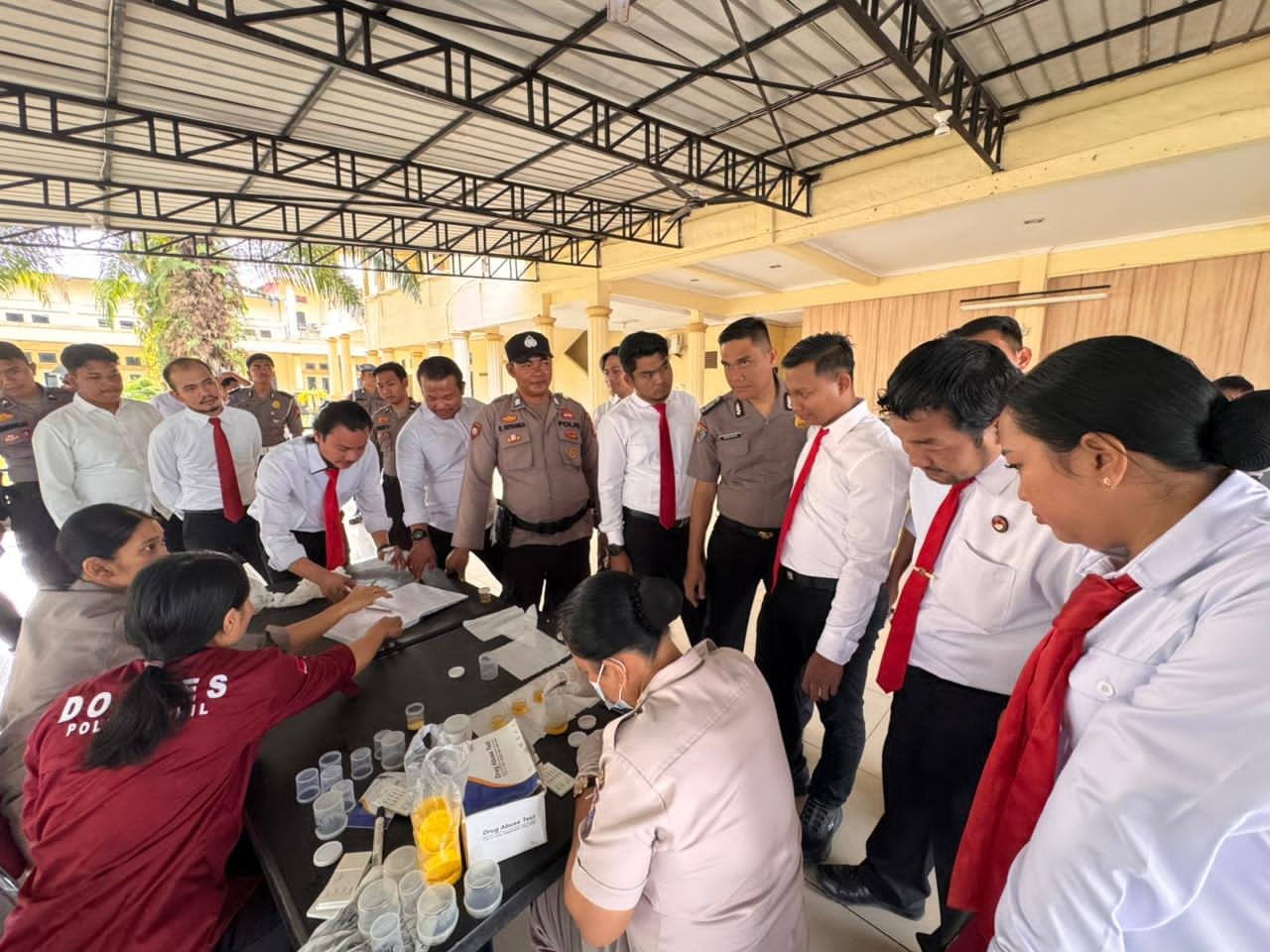 Sebanyak 58 personel menjalani pemeriksaan, terdiri dari 3 Pamen/PJU, 18 Pama, dan 37 Bintara. Dari hasil pemeriksaan sampel urine, seluruh personel dinyatakan negatif (-) mengandung zat Methamphetamine dan Amphetamine.