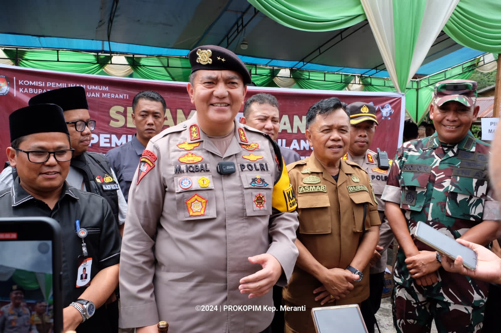MERANTI (HALUANPOS.COM)- Pelaksana tugas (Plt) Bupati Kepulauan Meranti AKBP (Purn) H. Asmar bersama unsur Forkopimda Kepulauan Meranti mendampingi Kapolda Riau Irjen Pol H. Mohammad Iqbal, saat meninjau pelaksanaan Pemungutan Suara Ulang (PSU) Pemilihan DPRD kabupaten/kota Dapil Meranti 4. Tepatnya di TPS 02 Desa Tanjung Peranap Kecamatan Tebingtinggi Barat, Sabtu (29/6/2024).