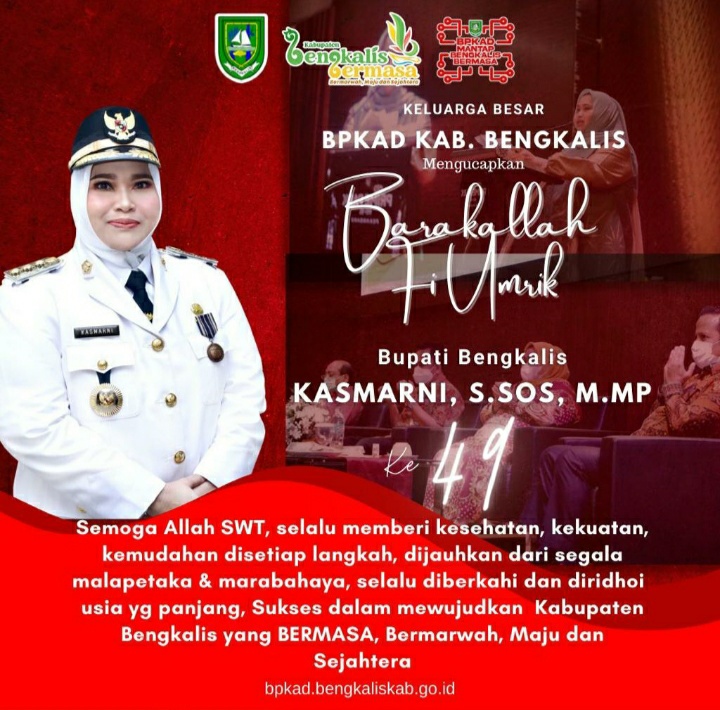 BENGKALIS (HALUANPOS.COM)– Memasuki usianya ke-49 tahun yang jatuh pada 14 November 2023, dihari spesial bagi Bupati Bengkalis Kasmarni dibanjiri dengan ucapan selamat dan doa dari berbagai kalangan.