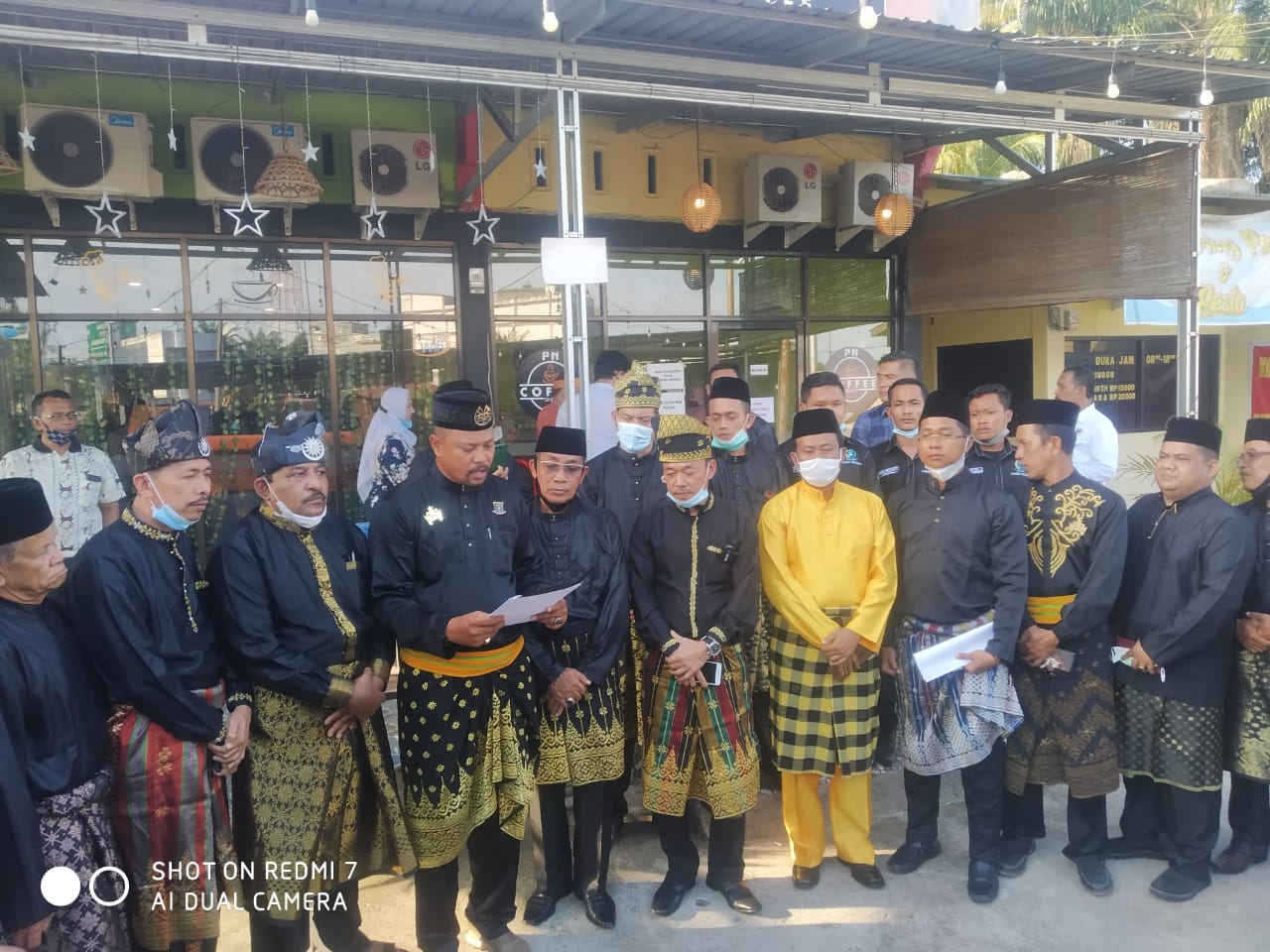 Rokan Hilir (HPC) – Unsur masyarakat Adat Melayu Rokan Hilir (Rohil) bersama Bupati dan Wakil Bupati terpilih Afrizal Sintong dan H Sulaiman, menggelar pertemuan sekaligus konferensi pers terkait hasil Panja Migas pengelolaan blok Rokan, Rabu (17/3/2021) di Ujung Tajung.
