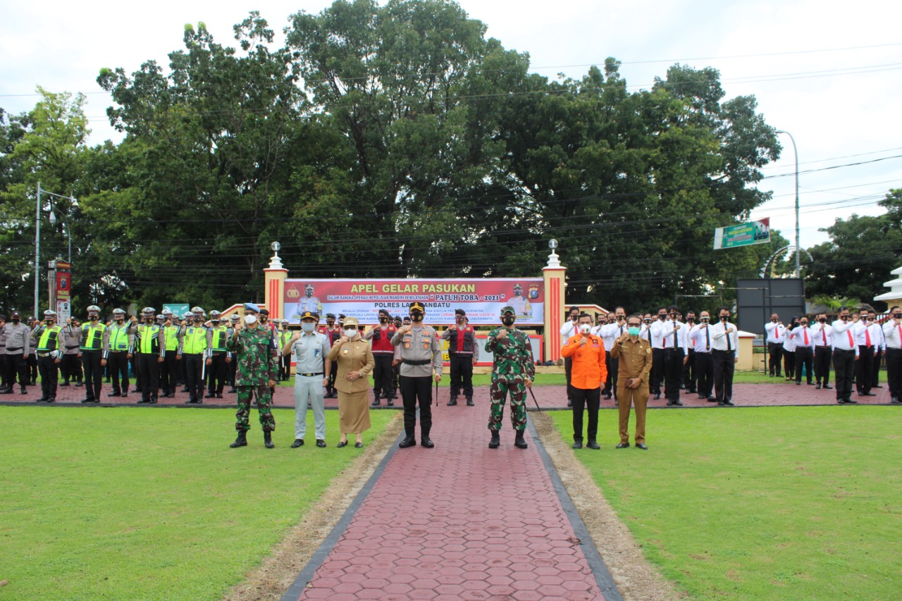LABUHANBATU (HALUANPOS.COM)-Wakil Bupati Labuhanbatu Hj. Ellya Rosa, S.pd. M.M Menghadiri Apel Gelar Pasukan OPS Toba tahun 2021 dihalaman Mako Polres Kabupaten Labuhanbatu, Kecamatan Rantau Utara, Senin (20/09/2021).