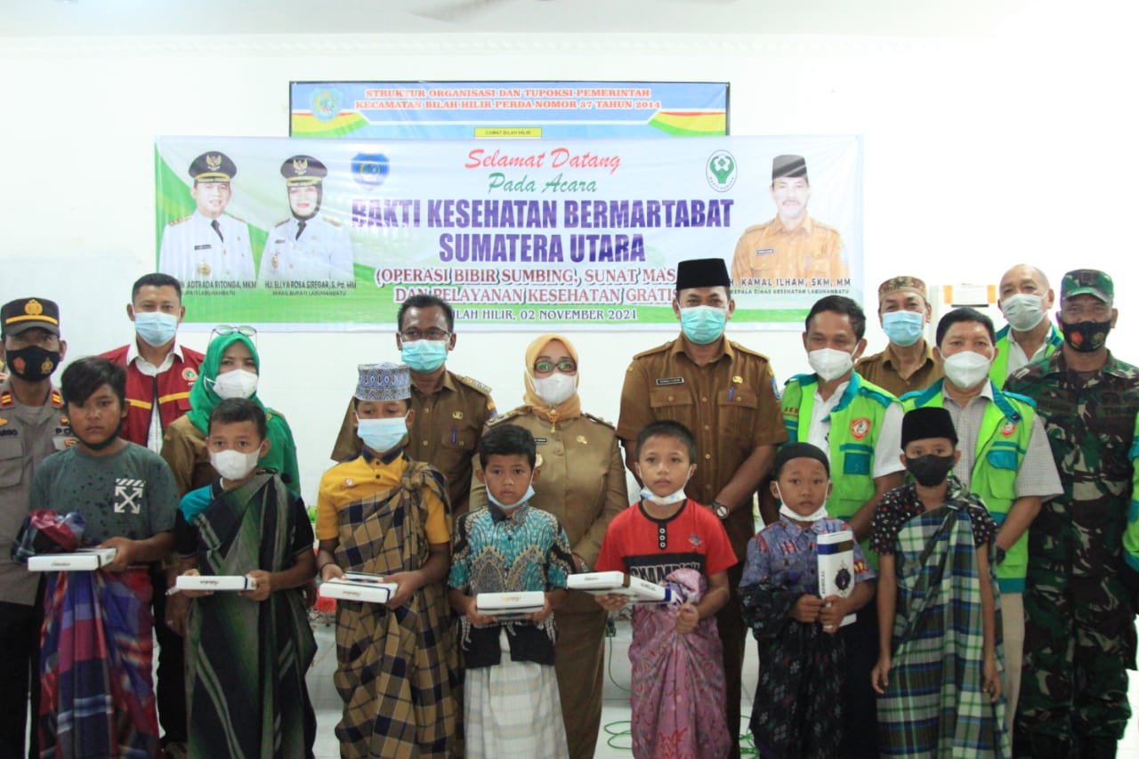 LABUHANBATU (HALUANPOS.COM) – Wakil Bupati Labuhanbatu Hj.Ellya Rosa Siregar,S.Pd.MM secara resmi membuka kegiatan sunat massal, operasi bibir sumbing dan pelayanan kesehatan gratis dari Satgas Bakti Kesehatan Bermartabat (BKB) Provinsi Sumatera Utara di Kantor Camat Bilah Hilir, Jalan Pembangunan, Negeri Lama Seberang, Kecamatan Bilah Hilir Selasa (2/11/2021)