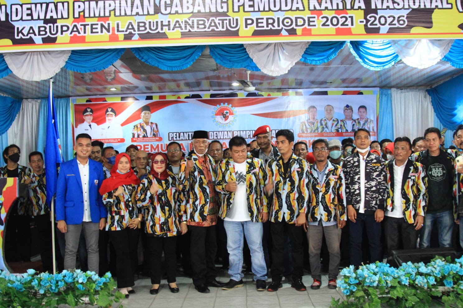LABUHANBATU (HALUANPOS.COM)-Wakil Bupati Labuhanbatu, Hj. Ellya Rosa Siregar, Spd, MM, menghadiri pelantikan pengurus Dewan Pimpinan Cabang Pemuda Karya Nasioanl (PKN) Labuhanbatu Periode 2021-2026 di Gedung Nasional Rantauprapat, Sabtu (05/02/2022).