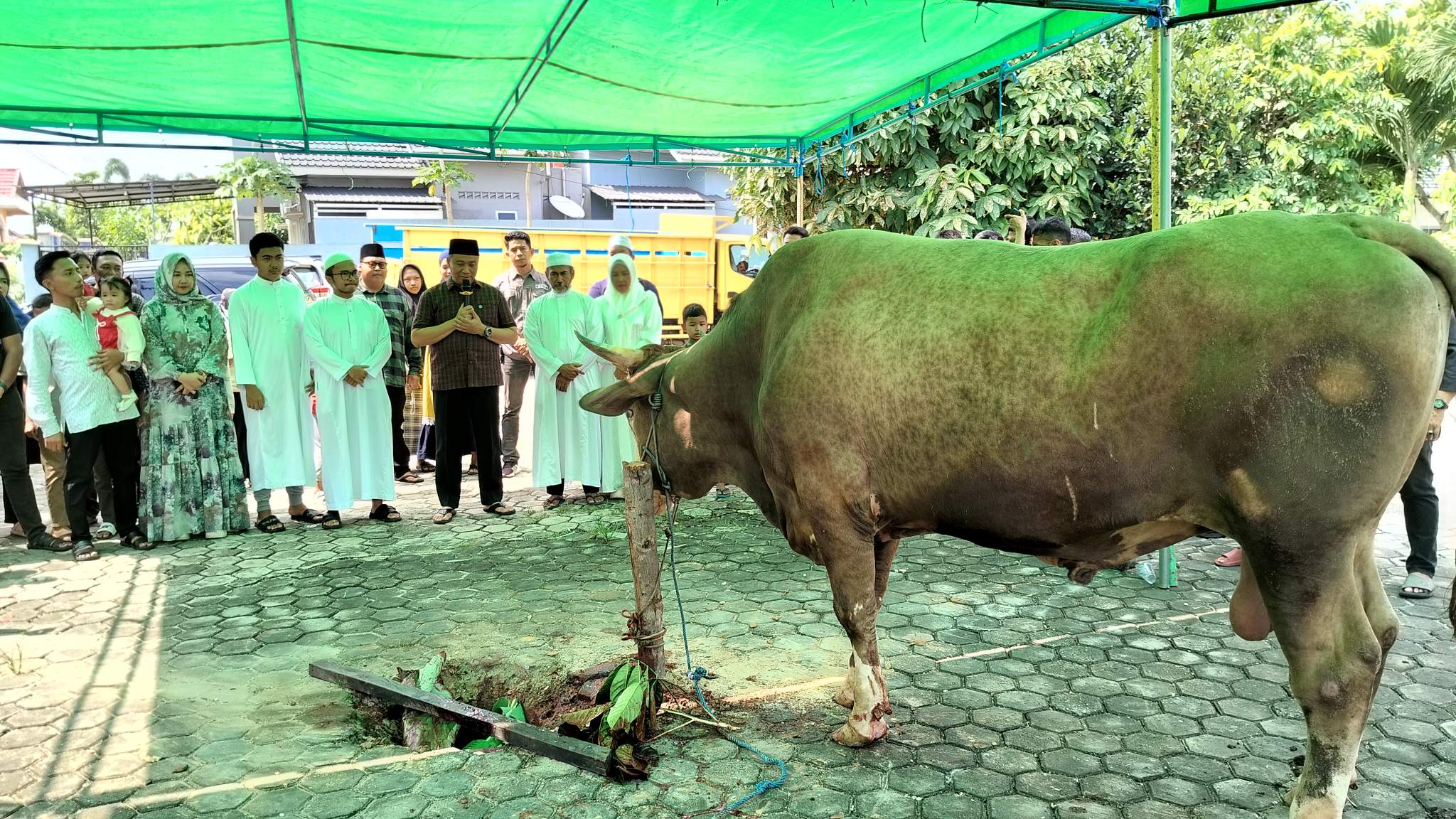 Pekanbaru(Haluanpos.com)-Keluarga besar H Fathullah melakukan pemotongan hewan kurban seberat 1,36 Ton yang langsung dihadiri oleh Wakil Walikota Pekanbaru, Markarius Anwar, tokoh masyarakat serta ratusan masyarakat sekitar dikediaman H Fathullah Jalan Satria Gang Keluarga Kelurahan Bambu Kuning Kecamatan Tenayan Raya kota Pekanbaru. Ahad(8/6/25)