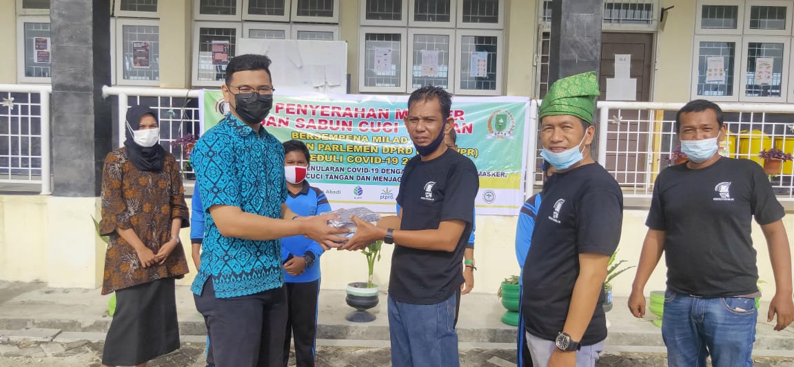 Ketua WPR Edi Gustian dan anggota WPR pun membagikan secara simbolis masker dan sabun-cuci tangan kepada guru dan siswa. Edi mengatakan, semoga bantuan ini bermanfaat bagi sekolah ini. ”Semoga bantuan ini ada manfaatnya dan semoga silaturrahmi kita tetap terjalin baik,” tutur Edi.
