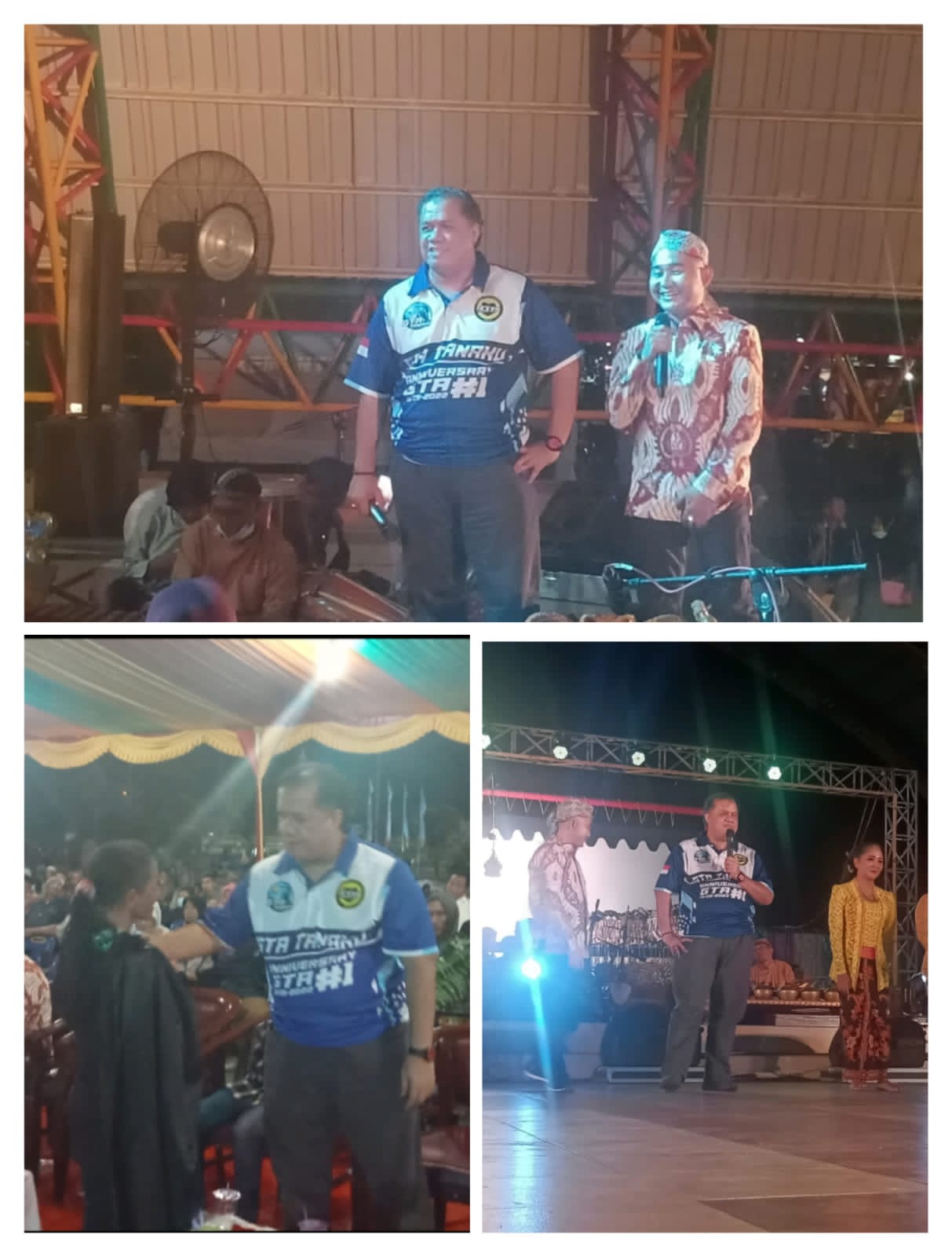 Di tengah-tengah acara, sang dalang meminta mantan Bupati Dua periode Yopi Arianto naik ke atas panggung. Saat diatas panggung sang dalangpun meminta mantan Bupati Dua pereode itu menyumbangkan satu lagu, Tak ingin sendiri diatas panggung Yopi kemudian menghimbau Fuad Santoso untuk naik diatas panggung.